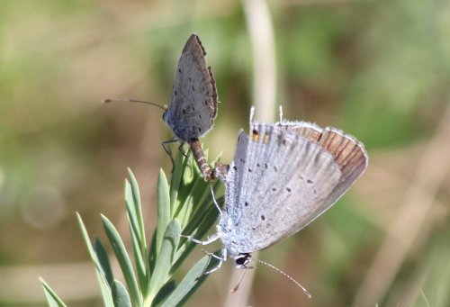 Exkursion Sandhäuser Pferdstriebdüne... Als wissenschaftliche Begleit- person durfte ich die einmalige Gelegenheit wahrnehmen und eine Exkursion zur Sandhäuser Pferdstriebdüne (über Suchmaschinen kann bei Interesse mehr nachgelesen werden) unternehmen. Dabei habe ich eine Kopula vom Kurzschwänzigen Bläuling fotografiert. Eine Art, die als gefährdet gilt! Ebenfalls bildlich eingefangen habe ich den Ockerfarbigen Steppenheidenzwergspanner. Eine Art, die als stark gefährdet gilt! Die rosa Färbung des Nachtigall Grashüpfers kommt zwar öfter vor, doch so stark sieht man sie eher selten. Es war ein überaus tolles spätsommerliches Erlebnis und ich bin dankbar, dass es ist ein Naturschutzgebiet in unserer Nähe gibt in welchem sogar die Europäische Gottesanbeterin zu finden ist (mir hat sie sich leider nicht gezeigt...).