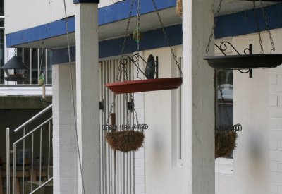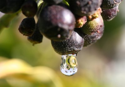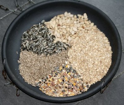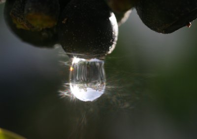 Vogelfütterung... Jeden Winter werden bei uns die Vögel gefüttert und in diesem Jahr haben wir ein neues Futterbehältnis aufgehängt. Wir haben in Plastikuntersetzer drei Löcher gebohrt und diese an Ketten für Hängeampeln befestigt. Die Haken sind so angebracht, dass sich die Vögel nicht verletzen können - also unter den Rand der Untersetzer. Zum Einen kommen auch größere Vögel gut ans Futter und zum Anderen lassen sich die Untersetzer ganz prima auswaschen.... ... als Futter werden Sonnenblumenkerne, ganz und entkernt, Erdnüsse, selbst hergestelltes Fettfutter und ein reichhaltiges Mischfutter angeboten. Selbstverständlich ist alles "katzensicher" angebracht. Und hier noch zwei sonnige Regentropfen eingefangen im Augenblick des Sonnenscheins des leider bisher recht trüben Winterwetters ...