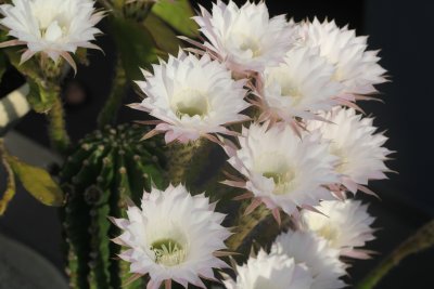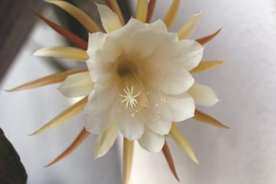 .... und bei Nacht. Wahnsinn - dieser Blattkaktus hat Blüten die überhaupt nicht duften und dazwischen birgt er eine Blüte die so stark riecht, dass man den herrlichen Geruch in zwei Metern Entfernung wahrnimmt - aber nur nachts!