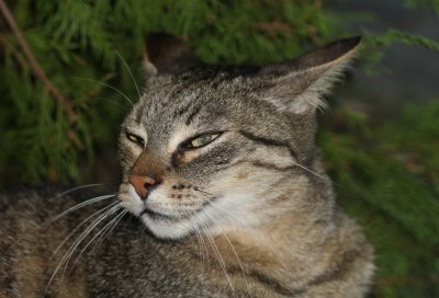 Ein "gefährliches" Katerfoto und mehr... .. Willi ist ein gefährlicher Kater ! Vor kurzem hat er sich auf der Jagd seine "Daumenspitze" amputiert. Ein Besuch bei den Tierärztinnen war notwendig und damit auch Antibiotika. Ein Annähen der Spitze war nicht möglich, denn die Wunde war infiziert. Drei Stunden Verband und drei Tage Wohnung waren jedoch das Äusserste und dann haben wir aufgegeben und den Kater wieder raus gelassen. Er hat sich die Spitze dann selbst amputiert. Eine tägliche Wundreinigung war doppelt notwendig - bei Willi und danach bei mir. Octenisept Salbe verhalf dann zur Genesung und wie man sieht ist alles gut verheilt, nur die Spitze fehlt eben. Und hier noch ein paar Fotos unserer Kakteen. Ich habe es einfach nicht fertig gebracht die Kakteen meines Vaters nach seinem Tode abzugeben, obwohl ich Kakteen nie mochte. Sie wuden von mir umgetopft und mittlerweile ist eine Hassliebe entstanden, was sie mir mit vielen Blüten wohl danken. Unsere Königin der Nacht hat in diesem Jahr bei fast allen Exemplaren 3 MAL! geblüht . Hier noch ein Kakteenköpfchen bei Tag ...