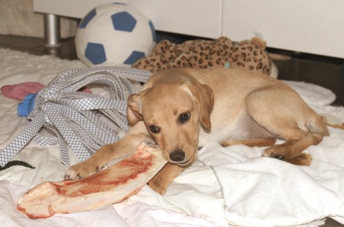 Beide hatten keinen so guten Start ins Leben. Sie wurden auf einer Müllhalde in Sizilien gefunden und nach Deutschland gebracht. Doch Mia hatte keinelei seelischen Schaden und war von Anfang an ein aufgewecktes, stets zufriedenes und völlig unkompliziertes Hundemädchen. Sie liebte es mit ihrem Bruder im Garten zu toben und sie liebte Spaziergänge. Immer nix wie raus, scnuppern .... Kinder fand sie auch ganz klasse und Mia freute sich über jeden Besuch. Zudem konnte Mia "Geschichten erzählen" - sie grunzte, sobald wir mit ihr gesprochen hatten.